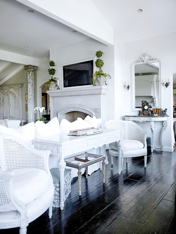 I love when white is used abundantly in a home. It’s so peaceful, bright and chic! And useful too: you can change the accent colors as you please with colorful accessories. For someone like me who constantly changes her mind when it comes to color (there are so many exquisite choices!), a white and neutral palette was the way to go when it came to decorating my place. I then add splashes of color with throw pillows and fresh flowers, for instance. I will share glimpses of my home with you very soon…